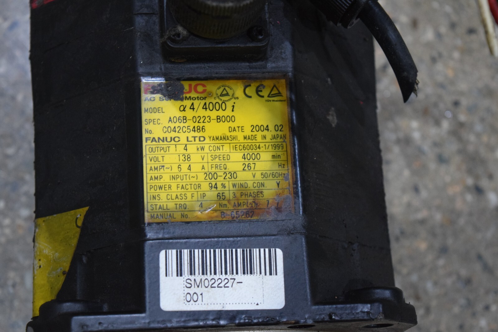 FANUC A06B-0223-B000 (CABLE BROKEN) ac servo motor A06B0223B000 (CABLE BROKEN) Business Line